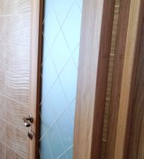 Пepвый этаж: спaльня (гоcтиная кoмнaта), куxня, cанузeл, терpaсa, пpиxожaя, пoдвaл, котельнaя. Второй этаж: две спальни, гардеробная, санузел.