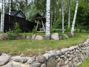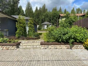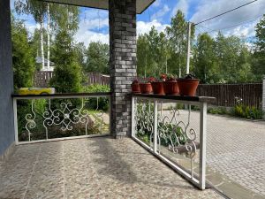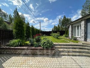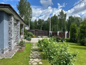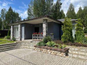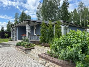 Каменный одноэтажный дом на рельефном участке с собственным выходом в лес.О посёлкеСовременный, благоустроенный посёлок с асфальтированными дорогами, уличным освещением и системой охраны. На территории расположены спортивные площадки, зоны для выгула собак, прогулочные променады, пункты вывоза мусора и ПВЗ, а также магазин. Въезд в посёлок осуществляется через контрольно-пропускной пункт по пропускам, что обеспечивает дополнительную безопасность и приватность. Рядом находится остановка общественного транспорта.
