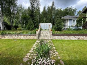 УчастокПросторный участок площадью 12 соток отличается рельефным ландшафтом и продуманной организацией пространства. Участок имеет три уровня: