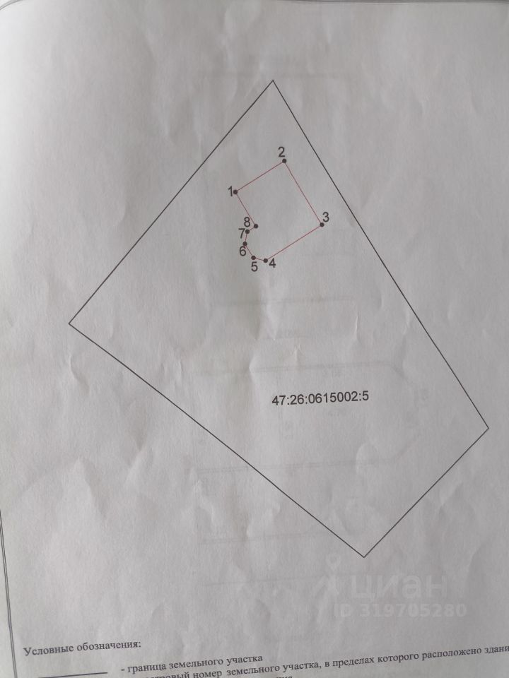 Кадастровые номера участка 47:26:061***002:*** и здания 47:26:0615002:*** указал продавец