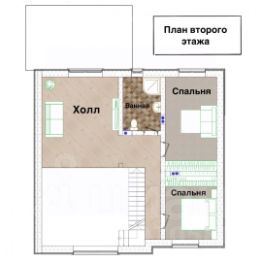 На втором этаже: холл-кабинет 25 м, две комнаты 10 и 15 м и второй санузел 6,3 м.