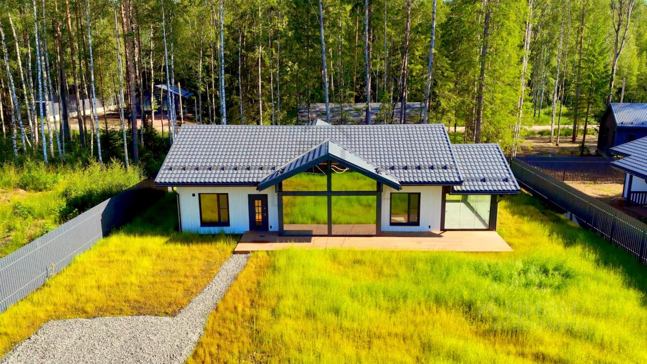 Дом с качественной отделкой по индивидуальному дизайн-проекту. В интерьере использованы теплые текстуры дерева, живые фактуры, продуманное освещение. Панорамные окна наполняют дом естественным светом, а теплые полы поддерживают комфорт в любое время года. Просторная терраса и застекленная веранда станут любимыми местами для отдыха, приема гостей или спокойных вечеров. Дом расположен в современном коттеджном поселке на берегу озера Волкоярви - тишина, чистый воздух и живая природа в шаге от дома.