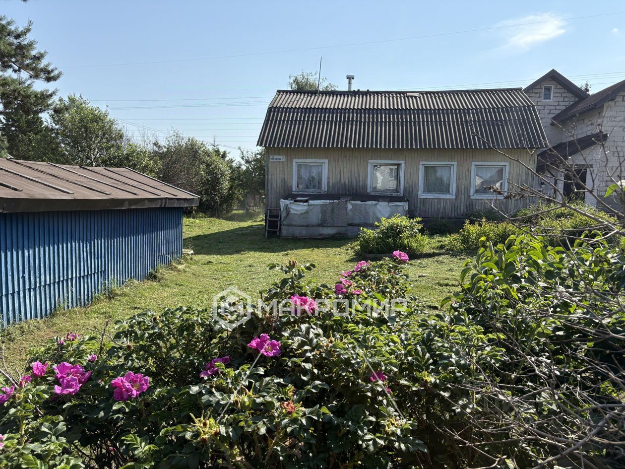 На участке расположен зимний жилой дом из бруса, общей площадью 47,3 кв.м, фундамент бетонный ленточный, один этаж, второй мансарда, отопление печное, электричество 15 кВт., воды нет, возможно бурение скважины, канализация: выгребная яма. На участке гараж, баня. Возможно подключение газа, магистраль проходит вдоль участка.