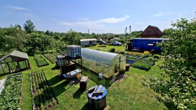 Уже есть плодовый сад (яблони), ягодники (смородина, крыжовник, малина), теплицы и полезные постройки отличный старт для садоводства!