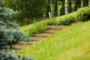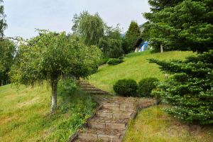 Участок расположен на склоне, выполнено террасирование.
