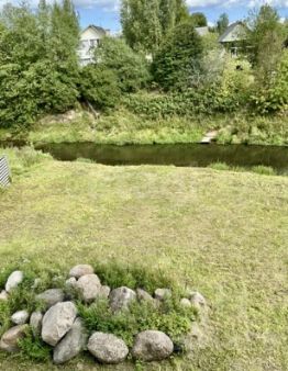 Участок площадью 22 сотки + 8 соток береговой линии с четырьмя 4 домами общей площадью около 900 м² расположен в живописном месте на берегу реки Суйда в Гатчинском районе неподалеку от Вырицы.