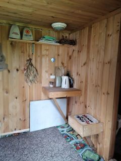 На территории участка: баня, хозблок, большая беседка с причалом для отдыха, пруд примыкает и частично заходит на территорию участка, мангальная зона, детская игровая зона, кострище из речных камней и валунов, двор - спортивный газон, несколько грядок, высажены цветы, кустарники, плодовые деревья, автомобильный заезд и парковочные места отсыпаны щебнем и утрамбованы, металлические откатные ворота.