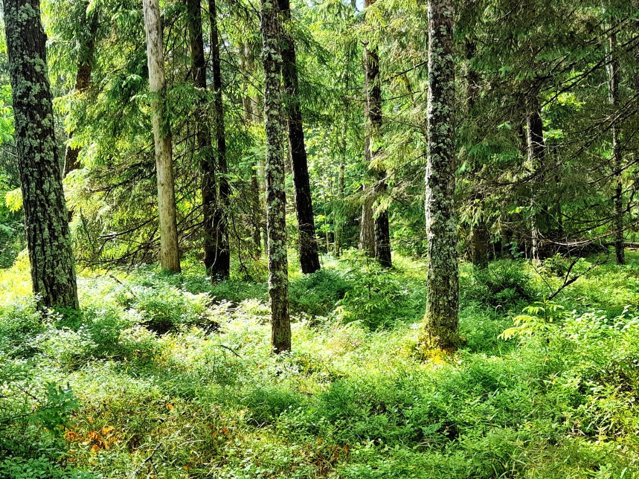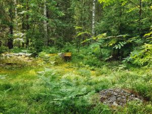 На участке сосны, черничник, грибы, рядом протекает живописный ручей, укромное тихое место и в то же время рядом все блага цивилизации.