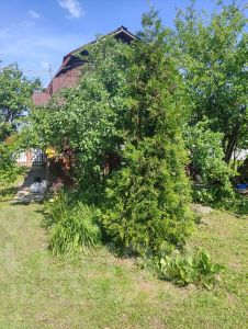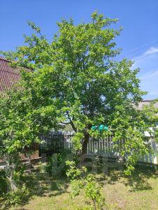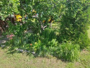 На участке теплица (3*6) много плодовых деревьев, 13 яблонь, несколько деревьев тёрна, сливы. Очень большой урожай яблок каждый год
