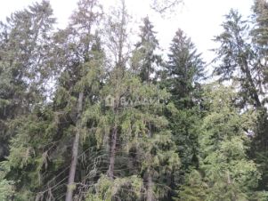 Две высокие сосны, молодые берёзки и ёлки — свой мини-парк