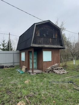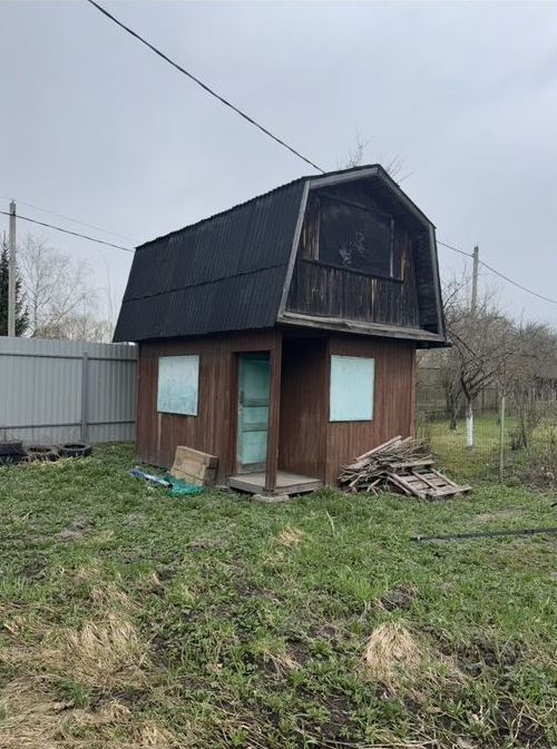 Домик на участке, 4*3 метра, двухэтажный, первый этаж обит вагонкой, стоят окна, на зиму закрываем ставни!