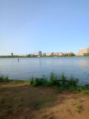 Недалеко от участка есть выход на оборудованный песчаный пляж. На озере есть возможность заниматься водными видами спорта.