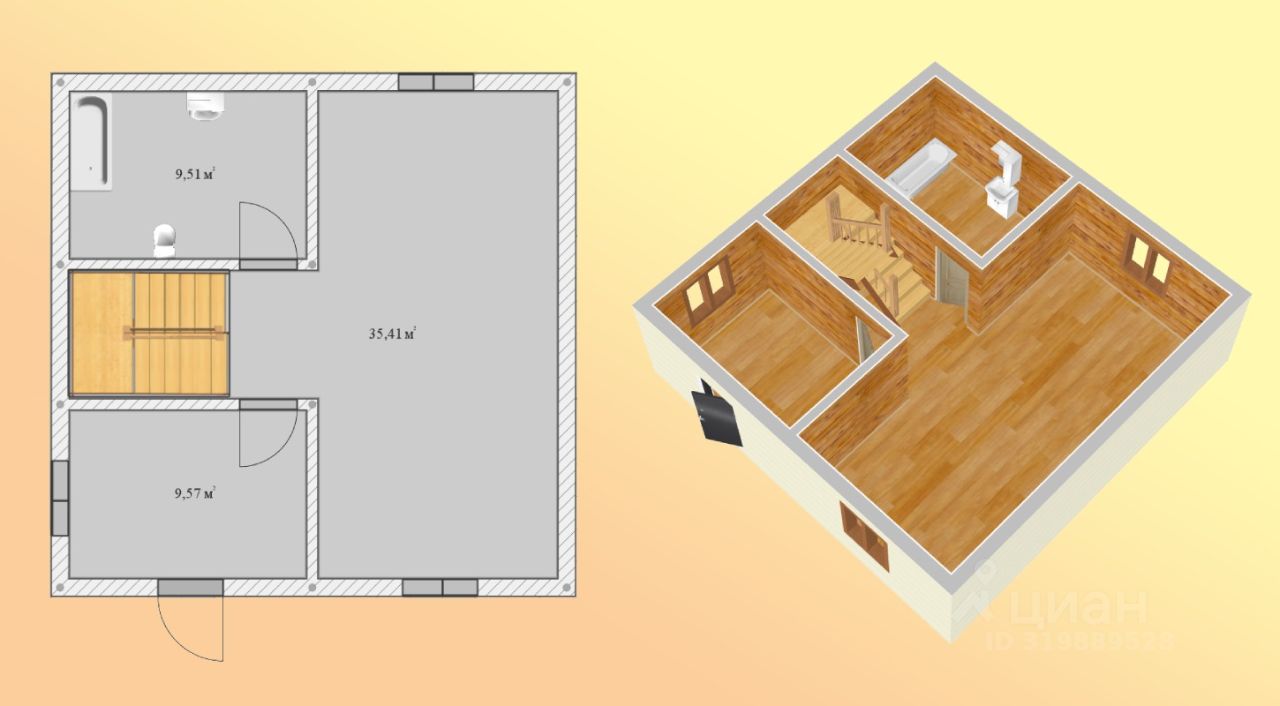 Удобная планировка. Площадь максимально используется для жилых помещений. На первом этаже возможно изменить планировку - либо выделить кухню и жилую комнату, либо выделить прихожую.