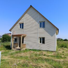 Площадь дома - 110 кв. м. , 2 изолированные спальни на втором этаже, кухня-гостиная и санузел на первом этаже.