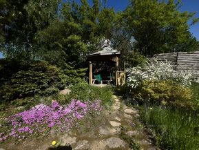 ДО Озера 120м. По тропе с высокими соснами и елями. На участке парник, плодовые деревья и кусты, красивые ели.