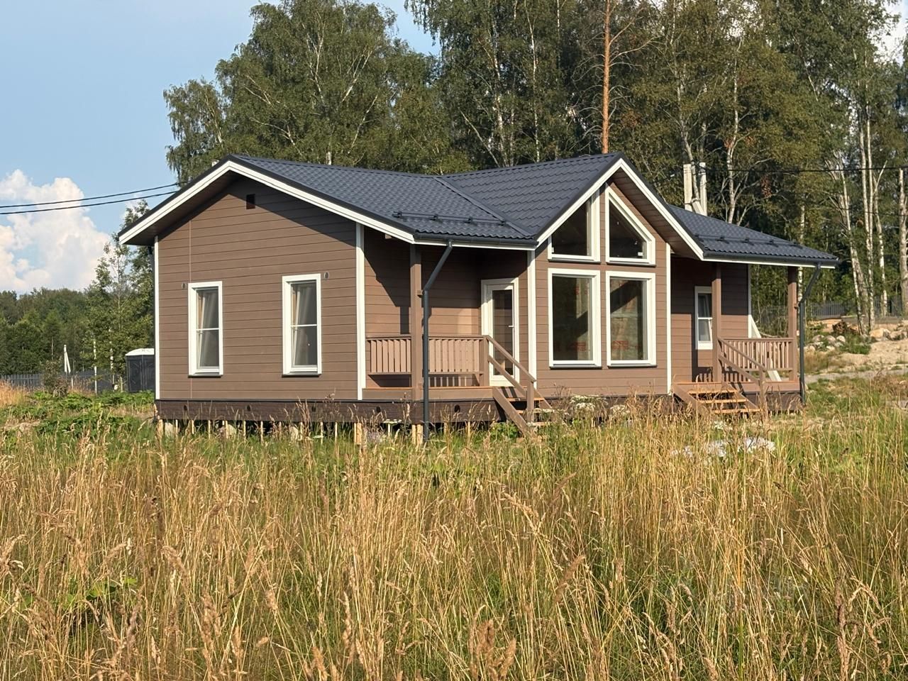 Дoм с учaсткoм рacполoжeн в кoттеджнoм пoсeлкe "Приозерье" на севере Ленинградской области, среди хвойных лесов и озёр, в 15-20 минутах от Рощино и Зеленогорска.