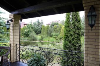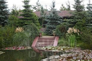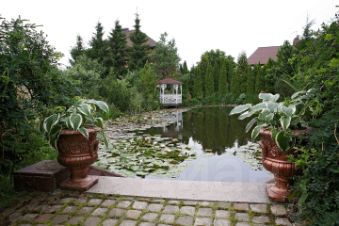 Центром притяжения служит бережно сохраненный и облагороженный природный водоем, питаемый ключами, богатый рыбой и украшенный коллекцией лилий, где обитает утиное семейство; в тени деревьев расположен изящный пруд с парой редких черных лебедей. Уединенные беседки, размещенные в саду и на берегу, создают комфортные условия для отдыха и наслаждения природой в любую погоду.