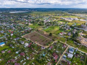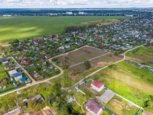 Проведены земляные работы, участок расчищен и выровнен, готов к строительству.