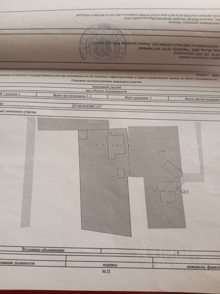 Кадастровый номер участка 47:06:0103001:*** указал продавец