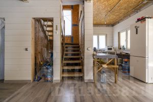 Дом 100 м2 с четырьмя спальнями и кухней-гостиной, в коттеджном поселке Грузино парк, расположенного в пяти километрах от центра поселка Лесколово Всеволожского района Ленинградской области.