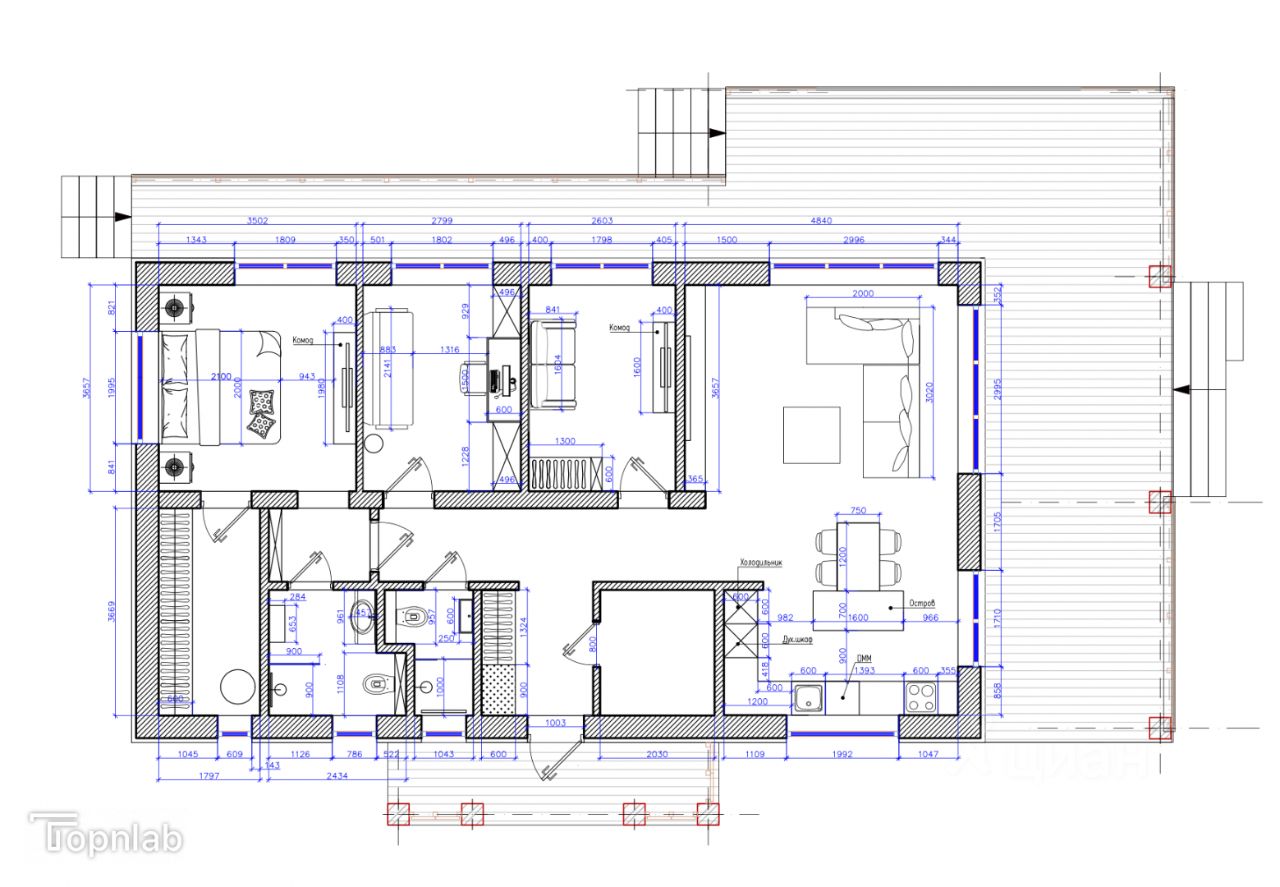 •Просторная кухня-гостиная 31 м² с выходом на террасу.