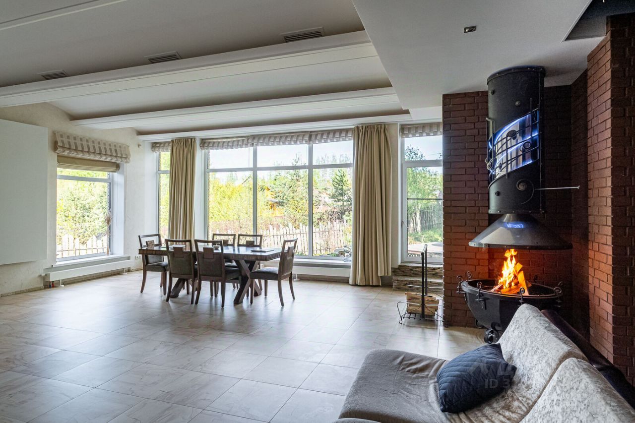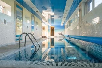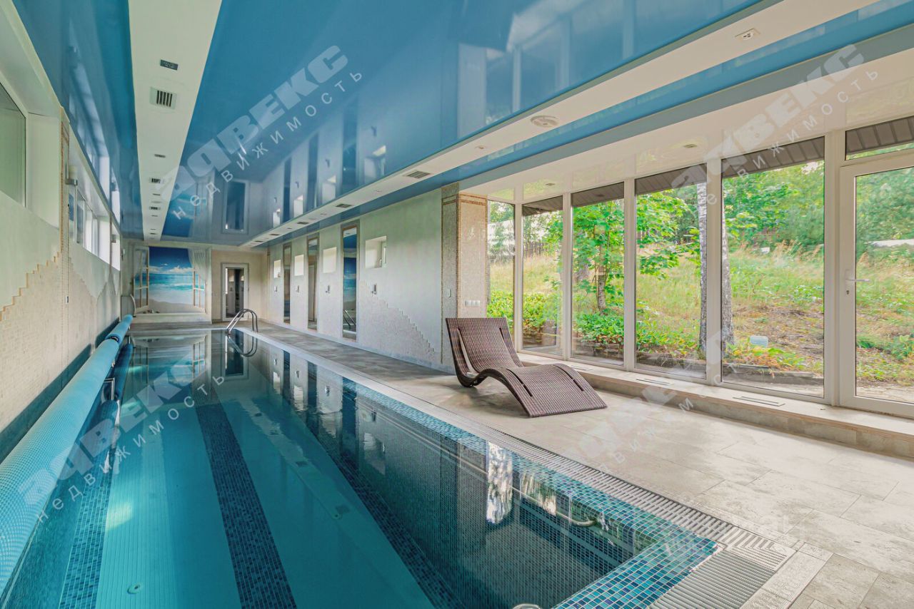 Живописная усадьба с панорамными окнами, бассейном, сауной, сценой и киноэкраном.