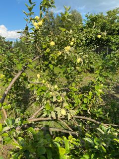 В саду растут яблони, сливы, малина, ежевика и смородина.