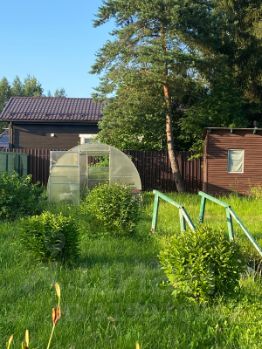 Дом располагается на земельном участке площадью 10 соток. Категория земель: Земли сельскохозяйственного назначения. Участок светлый и сухой, со всех сторон огорожен забором, имеется въезд для автомобиля. На участке сделан дренаж, пробурена скважина, канализация выполнена из 3-х колец и поля рассеивания.