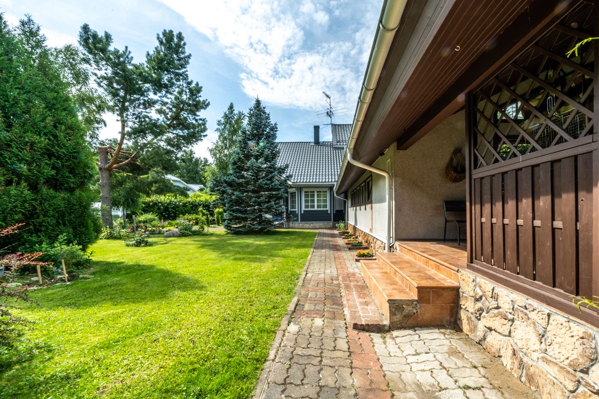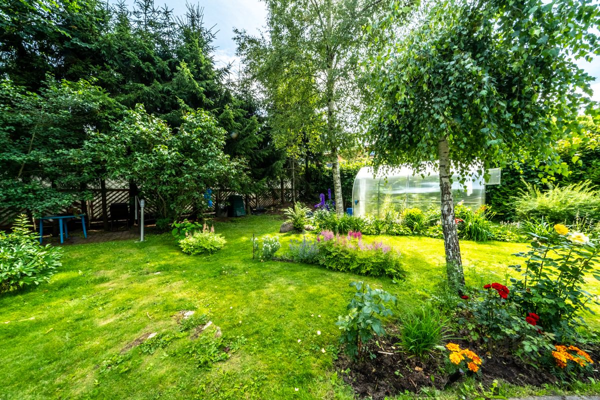 На участке выполнен ландшафтный дизайн, с большим количеством цветов, голубых елей, берёз и т.д. Удобная, оборудованная зона барбекю и терраса для отдыха на свежем воздухе.