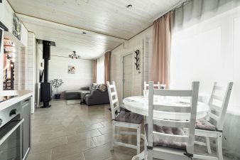 1 этаж: кухня гостиная с камином, туалет, душ, прихожая, кабинет