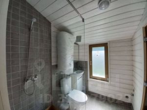 Санузел: керамическая плитка Дегре 1299, комбинированная с имитацией бруса.