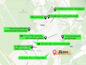 За 10 минут вы легко доберетесь до местных достопримечательностей "Саблинские пещеры", водопад, памятник природы "Саблинский" с экотропой.