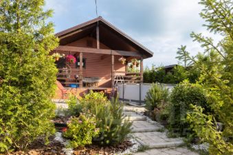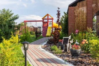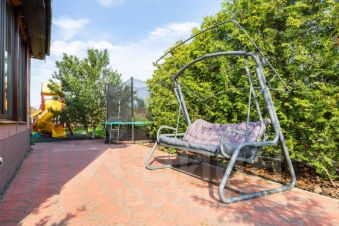 На участке детская площадка с горкой и скалодромом на безопасном профессиональном покрытии. Рядом летняя кухня под навесом, полностью оборудованная техникой , есть подвод воды. На участке выполнен ландшафтный дизайн,