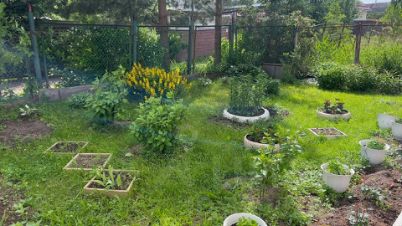 На участке цветы, яблони, различные ягоды, парники, баня. Удобно вести хозяйство, земля плодородная и была удобрена всем необходимым каждый сезон.