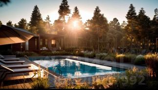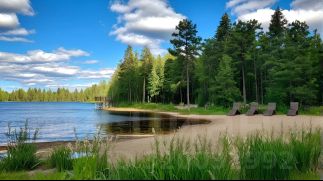 Коттеджный поселок стоит на первой береговой линии и с каждого участка открывается вид на лес и озеро.