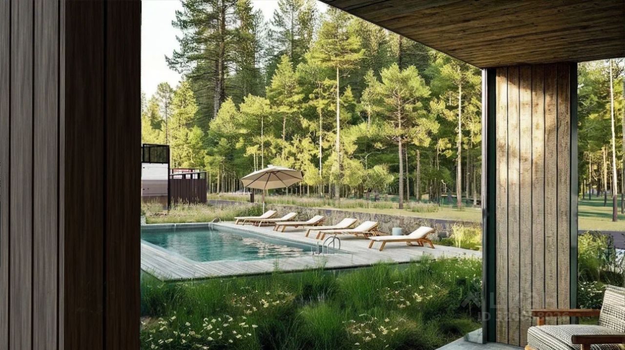Коттеджный поселок стоит на первой береговой линии и с каждого участка открывается вид на лес и озеро.