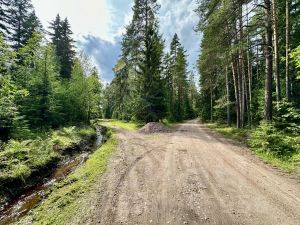 Сегодня к посёлку через лес уже проложена пятикилометровая подъездная дорога от поворота на пос. Уткино с трассы 41К-083.