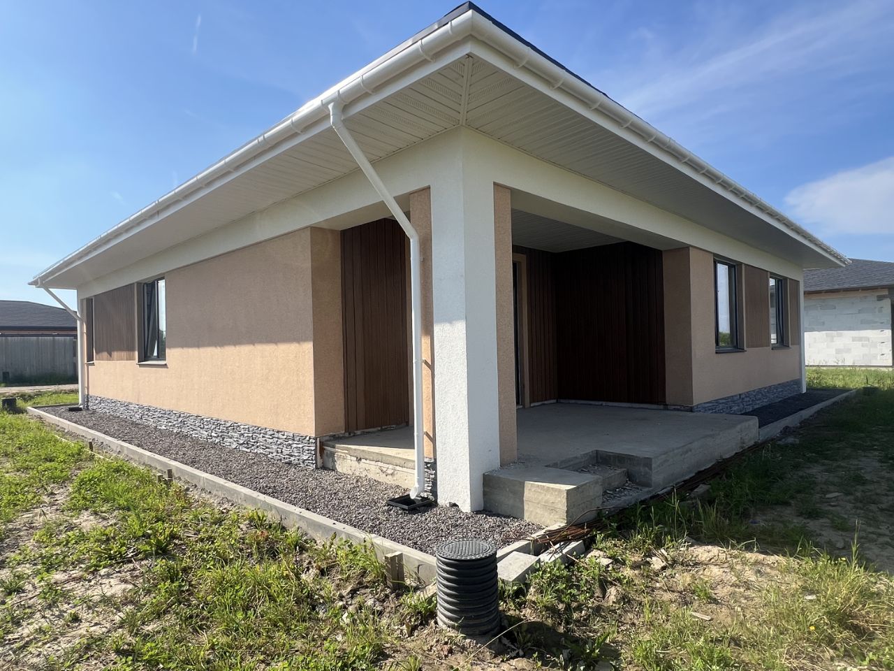 Выполнен ввод электричества и канализации в дом, установлена станция биоочистки.