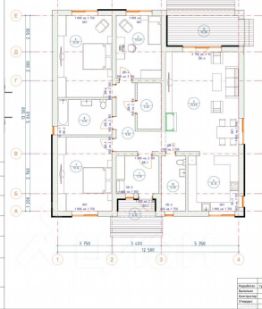 В доме 3 комнаты плюс большая кухня-гостиная, два санузла, гардеробная и прихожая-тамбур.