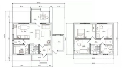2ой этаж: три спальни площадью 12,7, 10 и 9,3 кв.м., душевая с санузлом 4,4 кв.м.