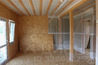 Фундамент из железобетонных свай с обвязкой из двутавра. Стены - деревянный рамный каркас с утеплением минераловатной плитой 150 мм. Кровля - металлическое фальцевое покрытие с утеплением минераловатной плитой 200 + 50 мм.