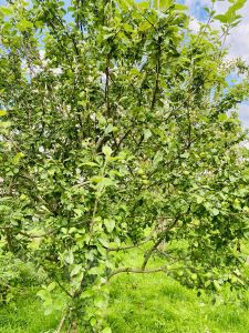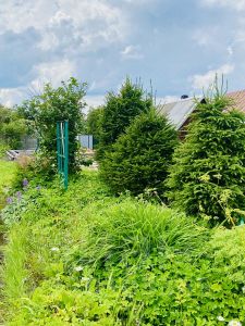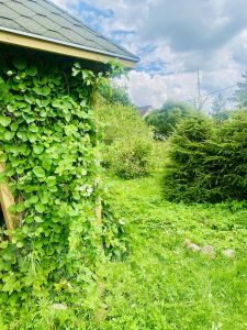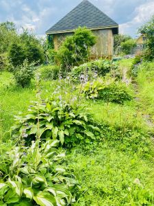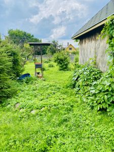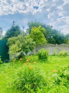 Участок разработан. Земля плодородная и удобренная. Много плодовых деревьев и кустарников: яблони, груши, крыжовник, сливы, облепиха, черноплодная рябина, черная смородина, малина; хвойные деревья и растения: елочки, лилейники, хосты, флоксы.