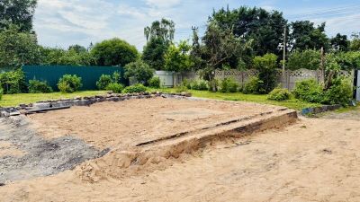 Две скважины с чистой питьевой водой и система канализации из двух колодцев значительно облегчат быт будущих покупателей. К границе участка уже подведен газ. Останется только возвести дом, для которого уже есть ленточный фундамент 7 на 14 метров.