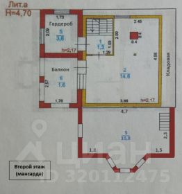 - Второй этаж: комната (14,6 м²), комната (10,8 м²)- с камином, без отделки, балкон (1,6 м²), два помещения для хранения