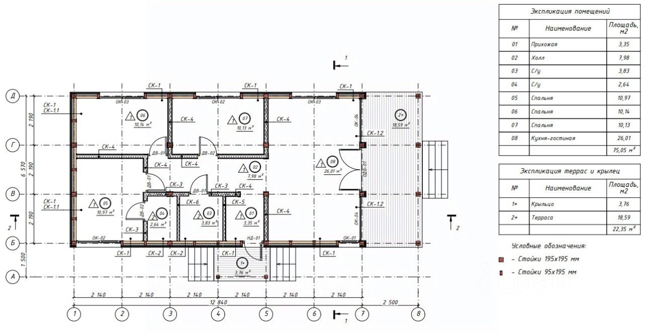 — несущий каркас дома выполнен из деревянного клееного бруса 195х195 мм