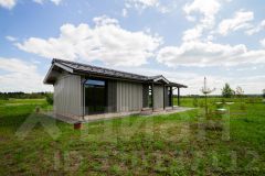 Дом построен по каркасно-щитовой технологии. Это настоящий деревянный дом, на стоечно-балочной системе с заполнением межстоечного пространства профильными деревянными элементами и утеплителем.