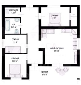 1 этаж - терраса, просторная кухня-гостиная, 3 изолированные комнаты, холл, котельная,
