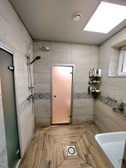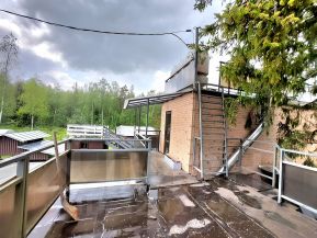 В продаже, участок 6 соток, поднят на 70см, укреплен по периметру бетонной подпорной стеной толщиной 40см, заезд на участок бетонная плита, устроен дренаж вокруг всех строений, участок благоустроен и ухожен. Дорога вдоль участка расширена, утрамбована щебнем. Над входом на участок установлен большой навес. Вода на участке питьевая — скважина. Электричество более 15квт. Канализация септик переливной. Дом, общей площадью 98кв. М, 2 этажа, фундамент бетонная плита, стены кирпич, утеплен эктрудированным пп, перекрытия бетон, крыша металл 0.7мм, утеплена каменной ватой, сделан теплорасчет, на первом этаже прихожая, комната с печью и камином, душевая, парная комната, туалет, теплый пол, на втором этаже комната 12 кв. М и комната 13,5кв. М с балконом, дом отапливается печью, камином, теплые полы, окна стеклопакеты, вода заведена в дом, горячая вода газовая колонка от газового баллона. Во дворе бассейн 5х4, бетонная чаша, глубина 2.5 метра, лицевая отделка пленка для бассейнов, имеет бетонное техническое помещение. Зимняя беседка 3х4, окна стеклопакеты, вода заведена, электричество в беседке, пол плитка, отапливается — теплый пол + батарея, крыша бетонная плита, на крыше беседки устроена открытая терасса, с огорождением и возможностью нырять в бассейн. Имеется гостевой дом, каркасный, фундамент плита, стены утеплены, крыша бетонная плита, 2 этажа, общей площадью 60кв. М, отопление от дизельного котла, по две батареи на каждом этаже, отдельный вход на второй этаж, вода в доме на 1 этаже, плита газовые баллоны. На участке имеется подземный, бетонный, сухой погреб, с отдельным входом, площадью 20кв. М, высота потолка 2,10м, пол, потолок, стены бетонные, внутренняя обшивка вагонкой, в погребе вода, электричество. Теплица на бетонном фундаменте размером 7х3,5м. Имеется крытый дровяник. Все работы на участке выполнены качественно, на долгие лета. Соседи по участку доброжелательные. Участок в окружении леса, грибы и ягоды рядом с домом, пение птиц, тишина, полный комфорт для отдыха и загородной жизни. Недалеко река Оредеж и Суйда. Дополнительно, можно выкупить два соседних участка. Магазин в шаговой доступности. От ж/д Красницы ходит маршрутка. До метро Московская, Купчино — 50 минут на машине, до Вырицы — 10 минут. В Вырице есть многие сетевые магазины, Пвз маркет-плейсов.