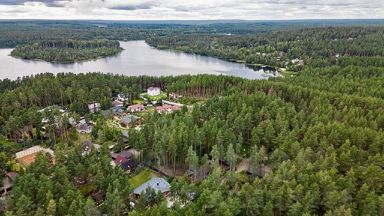 Вокруг однородная коттеджная застройка, приличные соседи, у всех большие зеленые участки с соснами