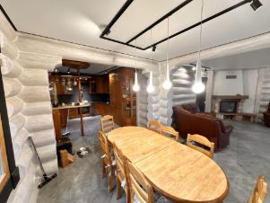 На 1м этаже - большая гостиная с камином и просторная кухня-столовая с полным комплектом мебели и техники,